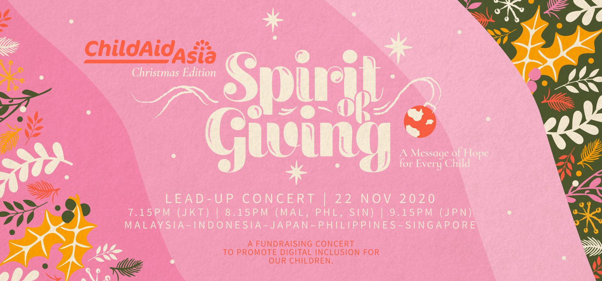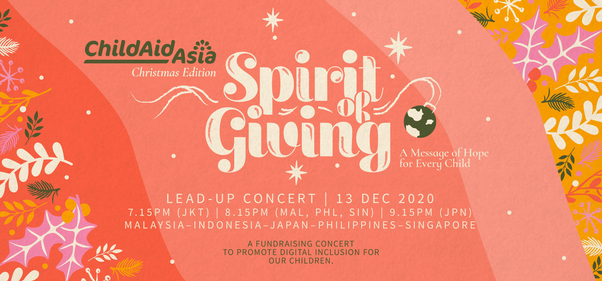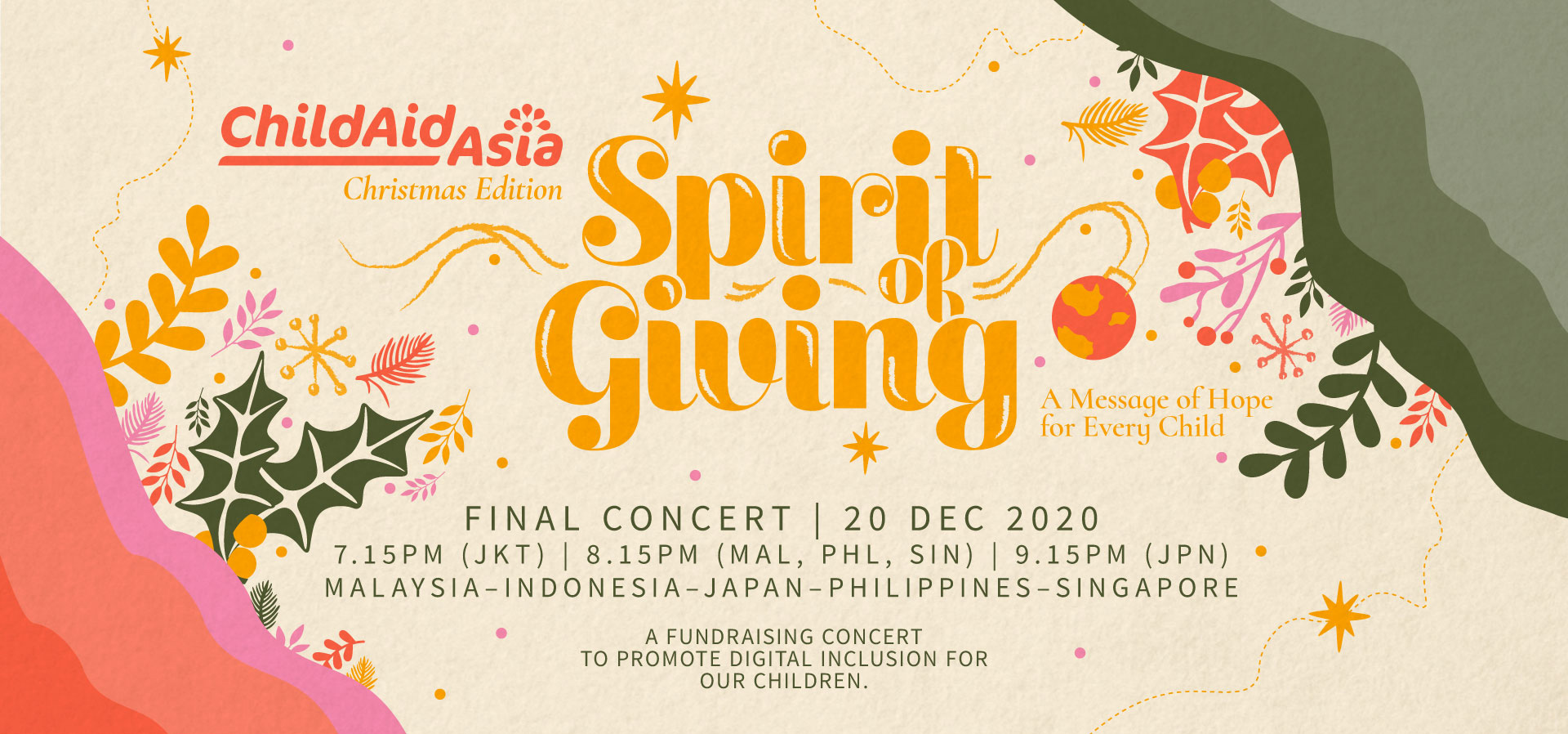 『チャイルド・エイド・アジア2020~X'mas バーチャルコンサート』は、今年の締めくくりにオンラインでお贈りする、アジア5か国の若いアーティストたちが、愛、思いやり、そして善意を共有し、「助け合う心」を体現するバーチャルコンサートです。
